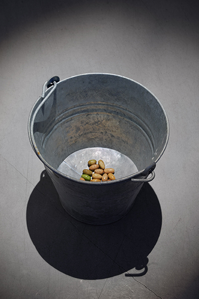Verket En möjlighet, påminner oss om hur små förskjutningar kan få något till synes bekant att te sig främmande. Ett ekollon fallandes från ingenstans blir till ett meddelande från okänd ort. Klangen från ekollonen som droppar ner i hinkens botten bildar en ljudkuliss vars rytm, likt en puls, betonar den pågående tiden.