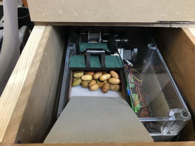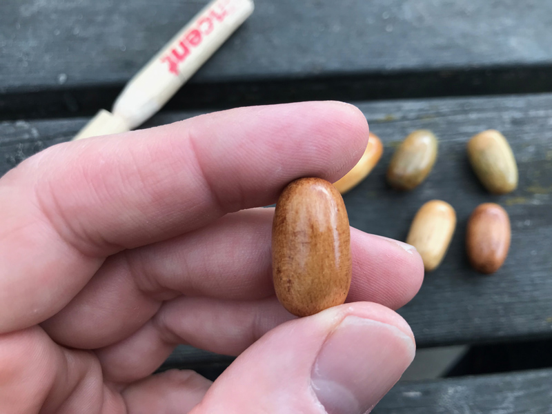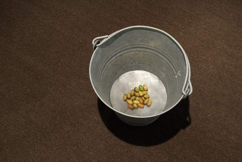 När pandemin slog till under våren 2020 och ingen riktigt visste var det hela skulle ta vägen, kom oron krypande i mig igen. Jag tänkte då åter igen på Luthercitatet och påbörjade ett omsorgsfullt arbete med att tälja ekollon. Arbetet tog upp den mesta tiden av den första pandemivåren. Precis som i Totoro ville jag att ekollonen skulle fungera som vägvisare eller amuletter, små påminnelser om att det när som helst kan dyka upp en möjlighet till något bra. En möjlighet består av femtio ekollon som slumpvis ett och ett faller från taket ner i en hink på golvet.