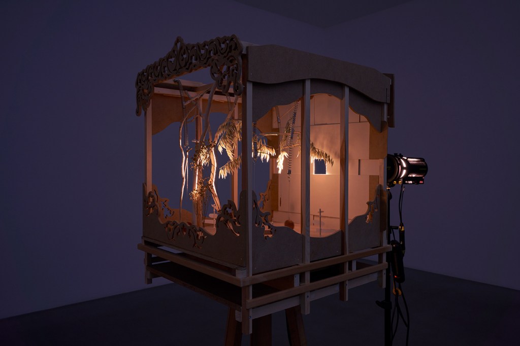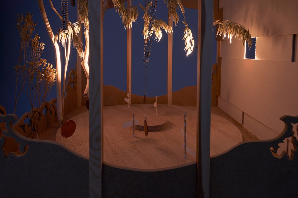 Trä, havre, wire, plåt, papper, elmotor, strålkastare