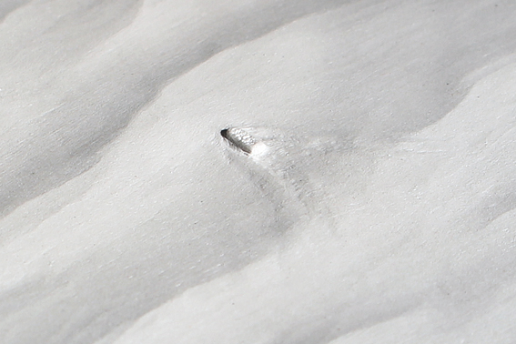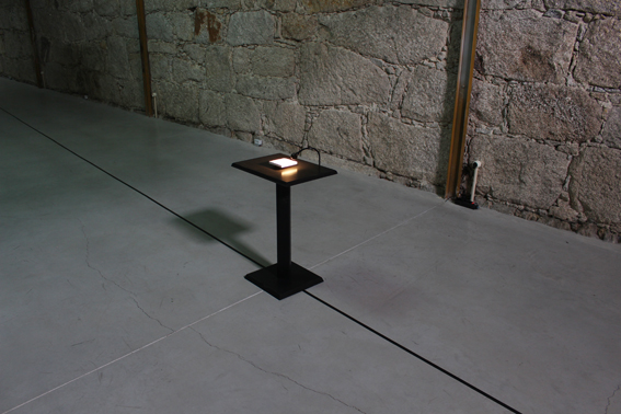 Miniatyrmodell som i samverkan med gallerirummet visar avståndet mellan Nordafrika och Europeiska unionens södra gräns vid ön Lampedusa.